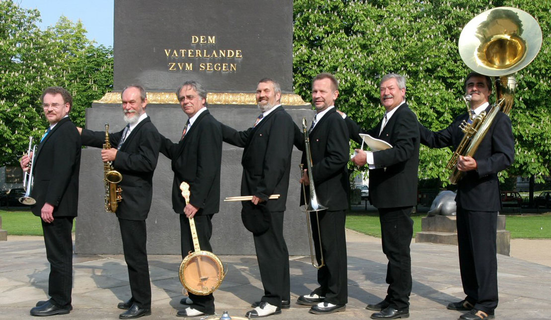 In klassischer New-Orleans-Jazz Besetzung mit Klarinette, Alt-und Sopransax, - Trompete und Kornett- sowie Posaune und im Rhythmus mit- Piano,- Gitarre und Banjo,- Tuba sowie Schlagzeug, präsentieren die 7 Jazzer ein vielseitiges und interessantes Repertoire.