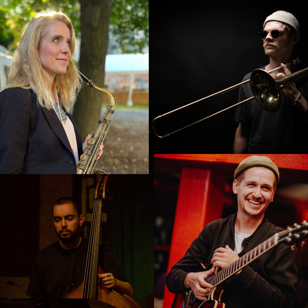 Die 4 Musiker:innen von Lottis Swingquadrat lernten sich nach dem Studium auf diversen Jazzsession kennen und entdeckten schnell ihre gemeinsame Leidenschaft für den alten Jazz, das Fundament, das uns packt, mitreißt und zum tanzen einlädt. So widmen sie sich alten Hits aus Amerika, die uns noch heute begeistern und direkt ins Herz gehen. Charlotte Joerges spielt hier Tenorsaxophon und Klarinette, wechselt Melodien und Begleitung ab mit dem warmen Sound des Posaunisten Sebastian Schulte, von unverkennbarem Swing an der Gitarre begleitet von Joel Podolski und dem groovigen Fundament des ebenso virtuosen Bassisten Finn Clausen.