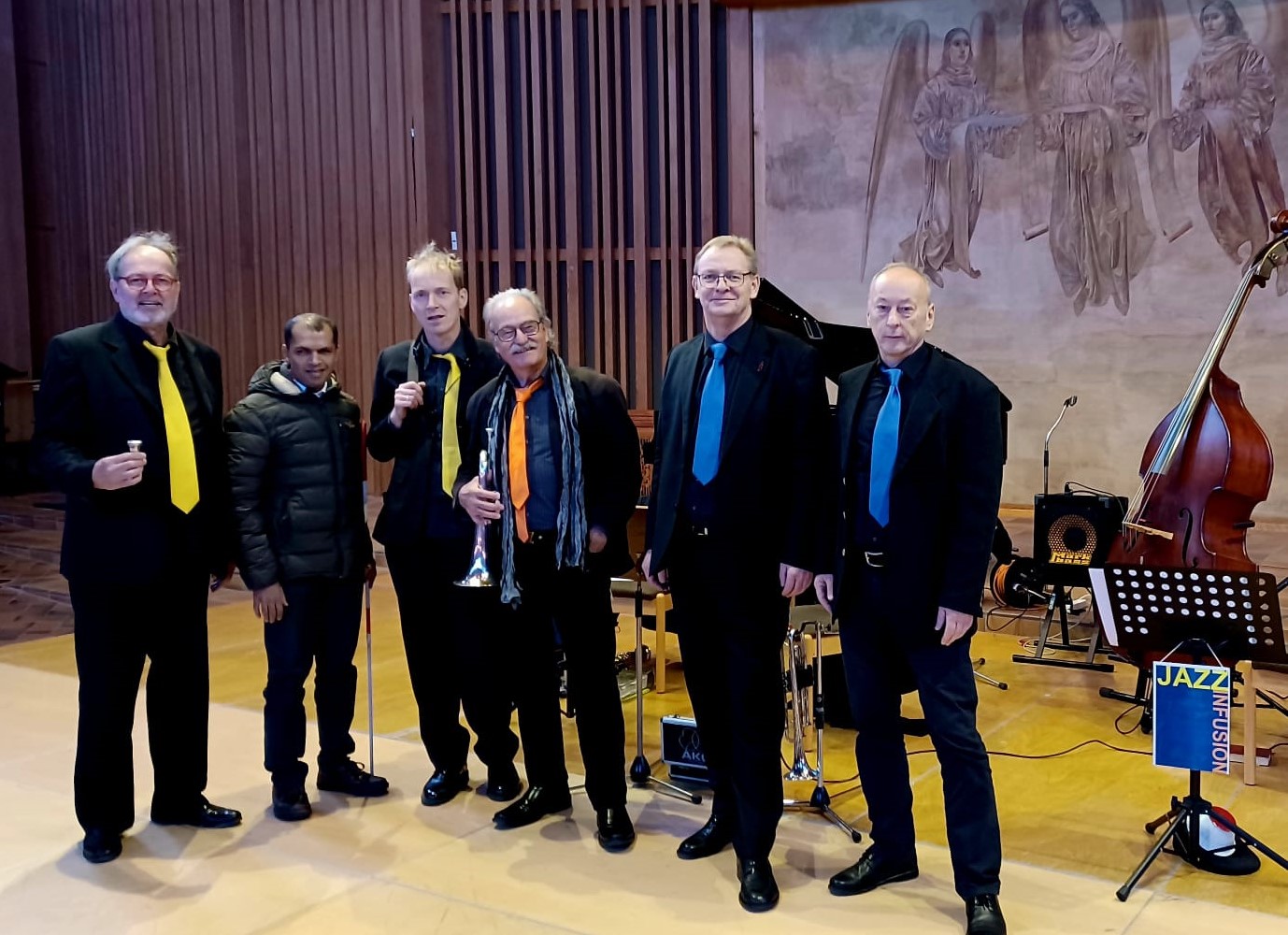 Die JazzInfusion als Swing- und Dixieformation wurde 2008 zum Zwecke einer nachbarschaftlichen Geburtstagsgeschenkaktion spontan ins Leben gerufen. Es galt den runden 80-igsten Geburtstag einer junggebliebenen netten old Lady in der eigens bewohnten Kirchgasse von Warth mit einem beswingten Ständchen zu beglücken. Was lag da näher als dieses musikalisch mit u.a. Lady Be Good und I (We) Can't Give You Anything But Love Baby bei sonnigstem Wetter unter Palmen und an schönster von Weinreben begrünter Südhanglage im alten Teil von Warth mit wunderbarem Blick auf die Kartause von Ittingen zu tun. Aus diesem herzlichem Ad-hoc-Musikgeschenkerlebnis von damals erwuchs mit den Jahren eine festere Jazzband, die mit der Zeit sehr erfolgreiche Auftritte verbuchen konnte in der Schweiz, in Holland und in Deutschland. So unternehmen es jetzt die sechs jazzerfahrenen Musiker aus der Bodenseeregion, begeistert ihren Groove und ihre Idee vom Jazz der 20–40iger Jahre im neuen, besonderen Kleid so frisch, eindrücklich anziehend und unterhaltsam wie möglich live für Sie ertönen zu lassen, wo eben möglich belebend rhythmisch, intramuskulär und intravenös, richtig in die Beine gehend und mitten ins Herz. (Zu erwünschten Nebenwirkungen fragen Sie bitte ihren Arzt oder Apotheker … ausnahmsweise einmal nicht!) Und das wie zu Anfang der Band weiterhin gerne an Geburtstagen, runden wie eckigen, an Feiern aller Art, festlichen wie alltäglichen, fröhlichen und auch traurigeren, am Tag wie in der Nacht, zu Wasser, Luft und sicher auch an Land. Wir, die Bandmusiker, sind somit jederzeit und jederorts bereit zu einer JazzInfusion – extra für Sie.